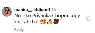 One more netizen commented, “No isko Priyanka Chopra copy kar rahi hai (sic).” Check out the comments below…