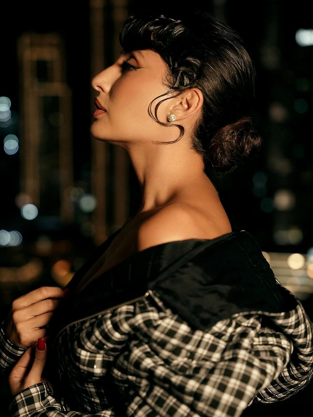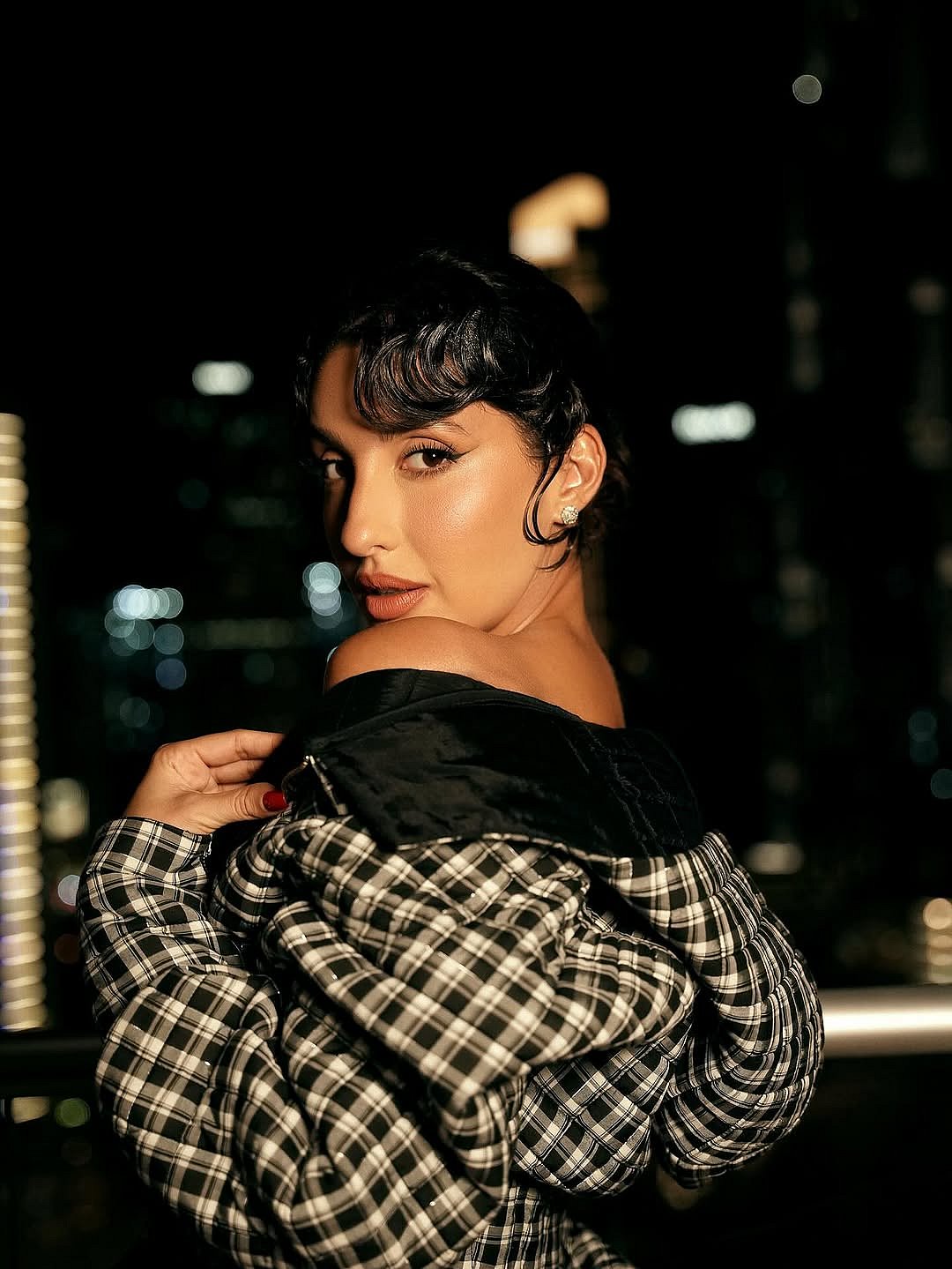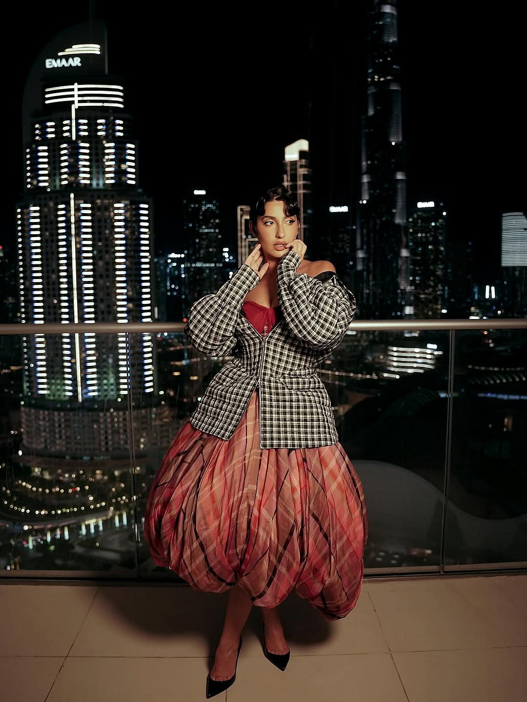 Nora Fatehi attended Rahul Mishra’s Spring-Summer 2026 showcase in Dubai, where the designer unveiled his “Fresh” collection under AFEW Rahul MishraShe turned the fashion presentation into her own runway moment, instantly commanding attention with her presenceNora wore a pink plaid corset gown that highlighted her structured, powerful silhouetteShe layered the look with a black-and-white checkered jacket, creating a striking contrast against the soft pink gownHer look embodied the spirit of Fresh, which reimagined the classic Madras check with modern details like embroidery and dragonfly motifsThe ensemble blended strength and femininity, reflecting the balance of Mishra’s collectionAdding to the glamour, Nora used the occasion to launch her global single “Just a Girl” featuring Shenseea, cementing her dual identity as a fashion and music icon