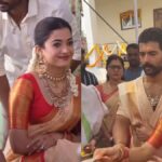 In a viral video, villagers from Thummanapeta are seen welcoming the newlyweds. Rashmika’s sister, Shiman Mandanna and Vijay’s brother, Anand Deverakonda, accompanied the couple during the grand welcome.